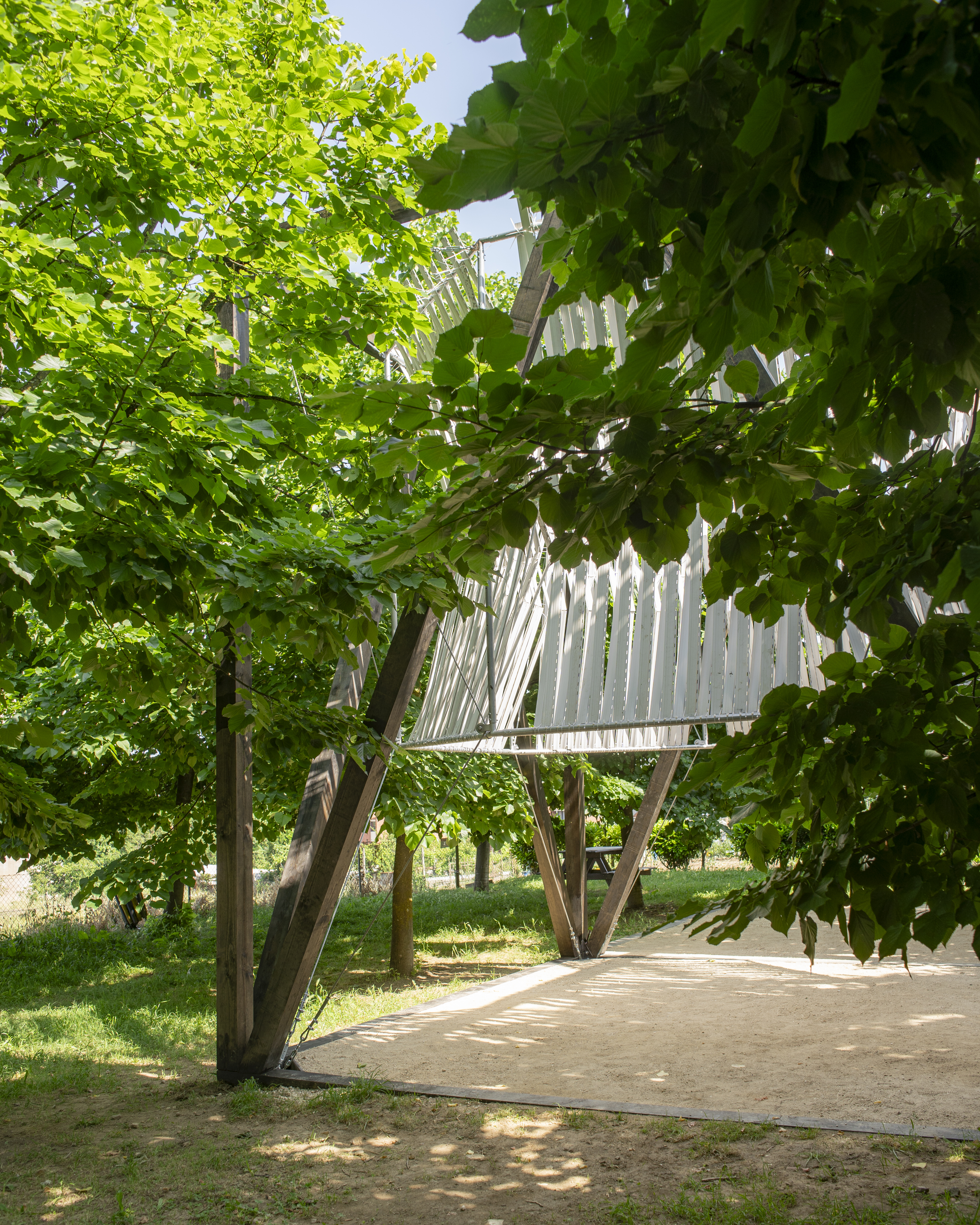 Um dos elementos que criamos foi uma área de repouso onde as pessoas pudessem sentar ou deitar. Não havendo praia no Porto, quisemos trazer a praia ao Porto.